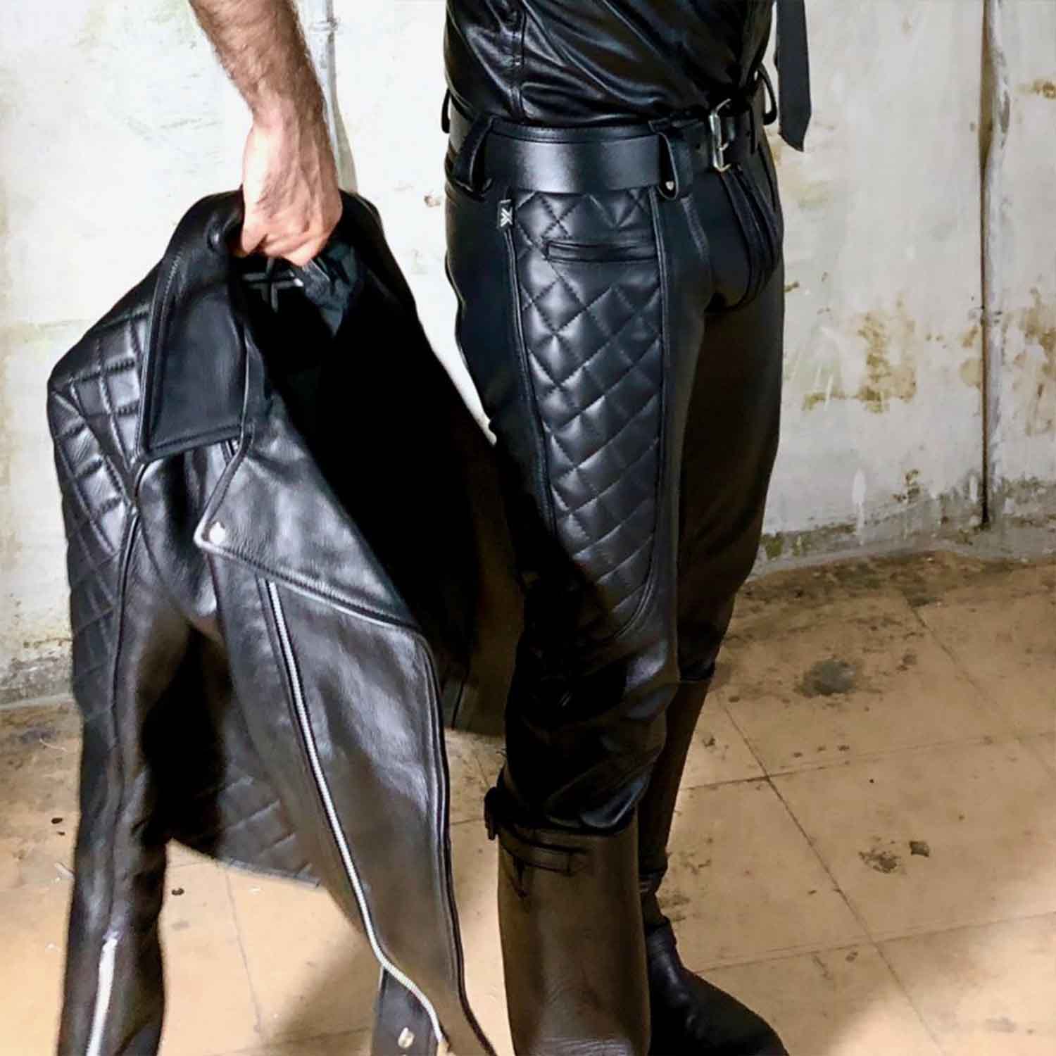 Mens Real Cowhide Leather Biker Saddle Pant Black Standard...