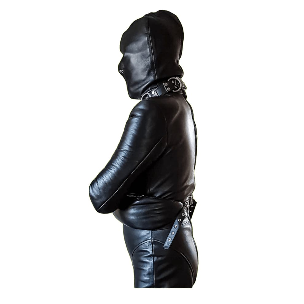 The LeatherAdults Straitjacket Bondage Catsuit has some unique features to confine you in leather from head to toe.